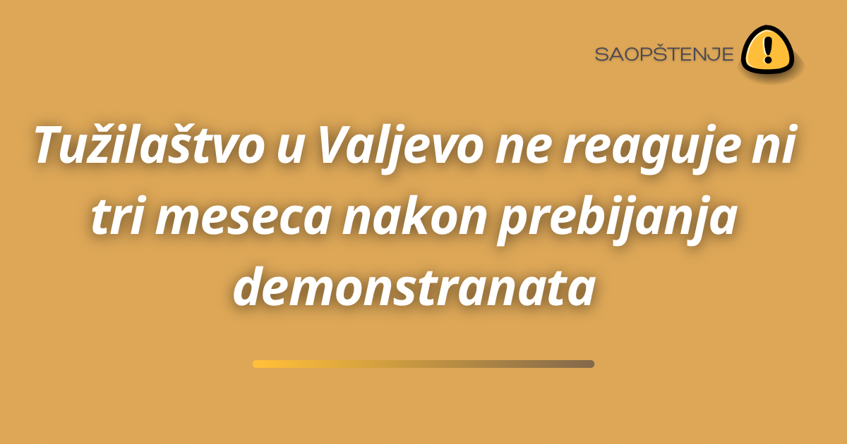 Iako je prošlo skoro tri meseca od nasilja koje je policija izvršila nad građanima i tri nedelje od objavljivanja saopštenja, javno tužilaštvo u Valjevu i dalje nije sprovelo nijednu radnju u pravcu procesuiranja policijskih službenika koji su bili dužni da obezbede sigurnost svojih sugrađana, a ne da se nemilosrdno iživljavaju nad njima.